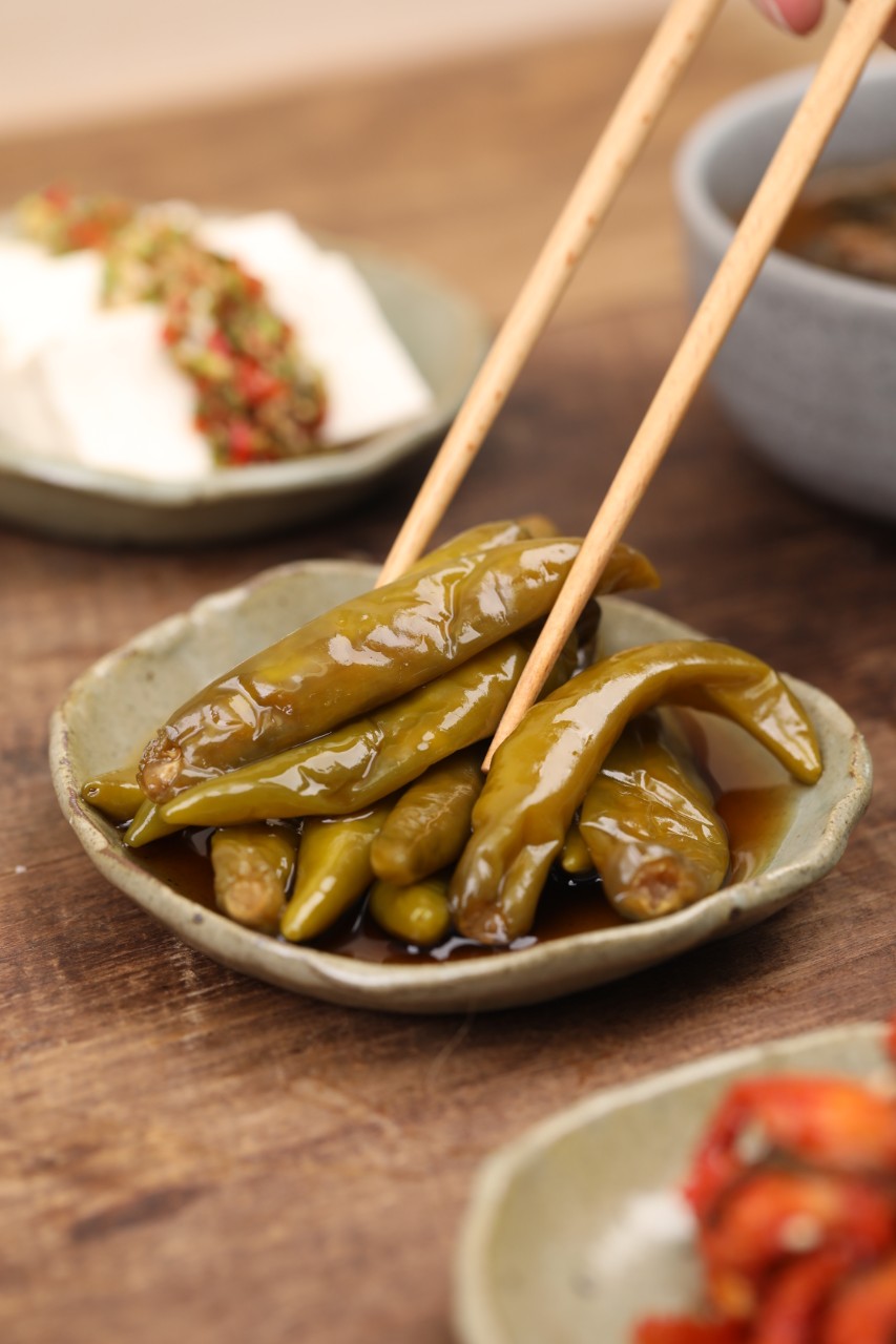 양념장아찌도 소금에 절이는 일반 고추무침과는 다르게