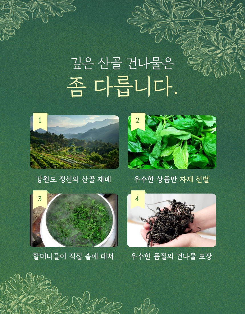 하여 이렇듯 우수한 품질의 건나물이 생산되는 셈이죠.