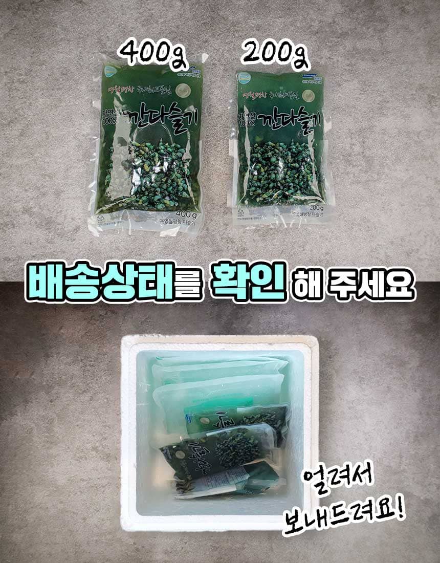 용량 : 200g (깐다슬기 70g + 육수 130g) 400g (깐다슬기 140g + 육수 260g)