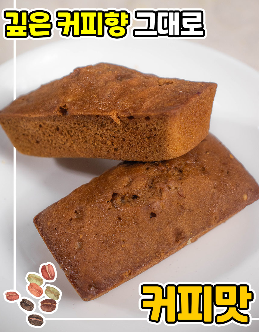 [커피] 계란(국내산)25%, 백설탕25%, 마가린(말레이시아)25%, 중력분(미국,호주)24.5%, 커피향(커피농축액, 프랑스산)