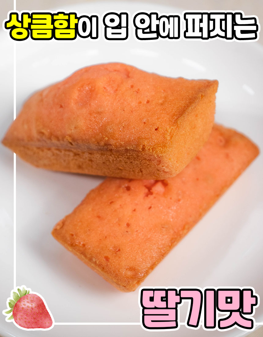 [딸기] 계란(국내산)25%, 백설탕25%, 마가린(말레이시아)25%, 중력분(미국,호주)24.5%, 딸기레진(향료제제, 혼합제제)