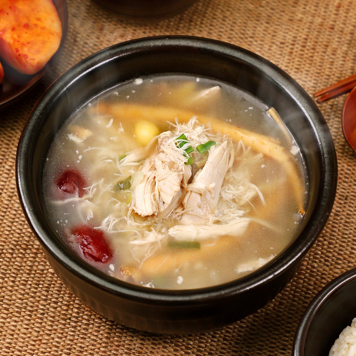 ✅ 원재료명 : 닭(국내산), 정제수, 마늘, 대파, 양파, 대추, 깐밤, 황기, 감초, 인삼(국산), 정제소금(국산), 닭추출농축액, L-글루탐산나트륨, 깐은행, 후추가루, 건조후추(통후추)