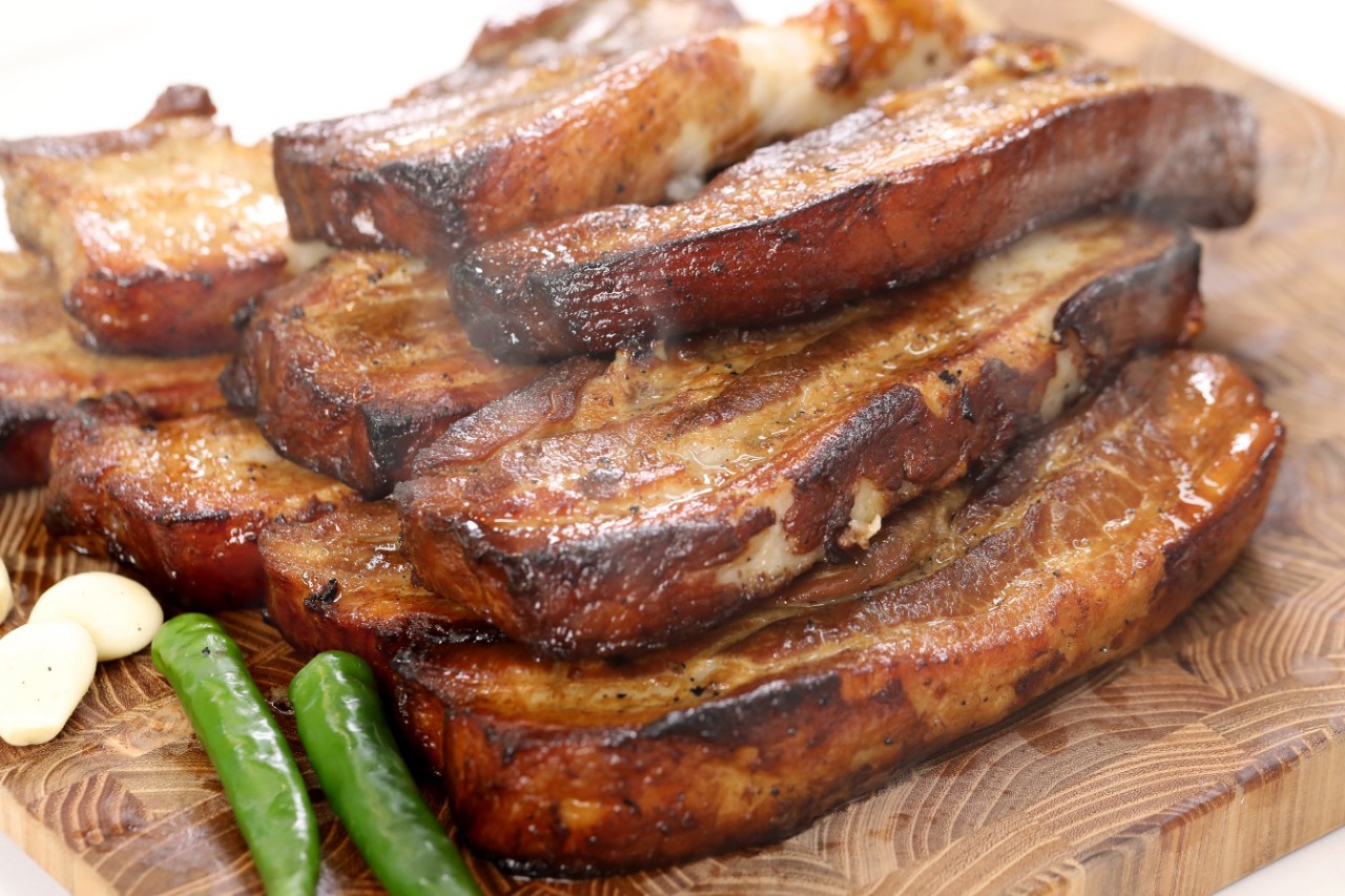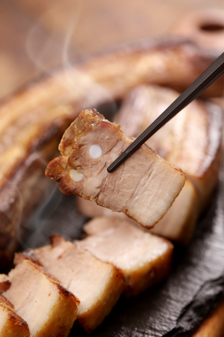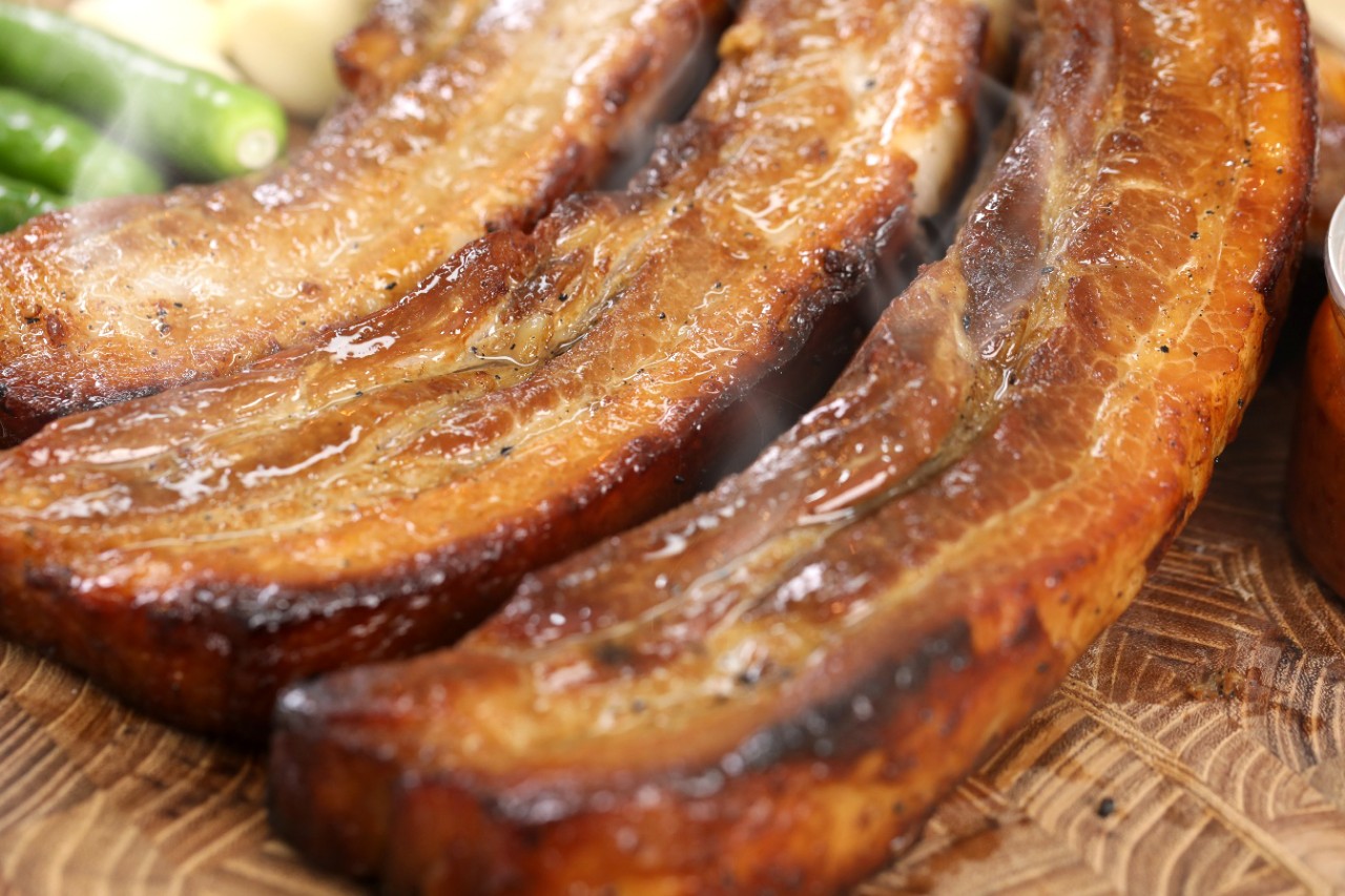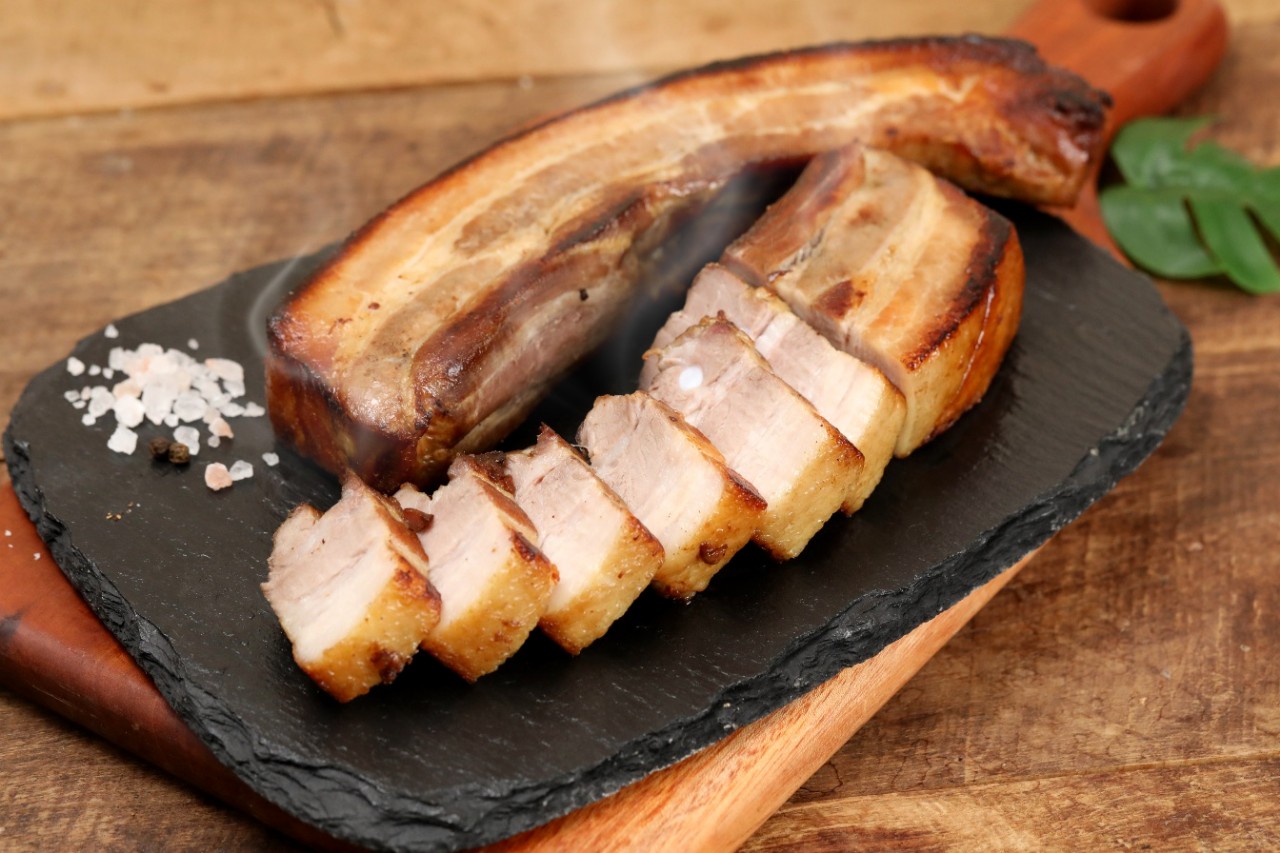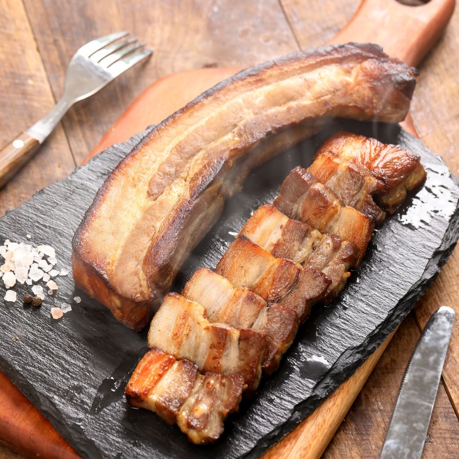 두툼하게 자른 삼겹살에