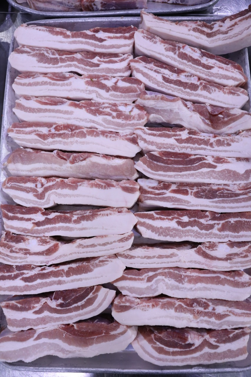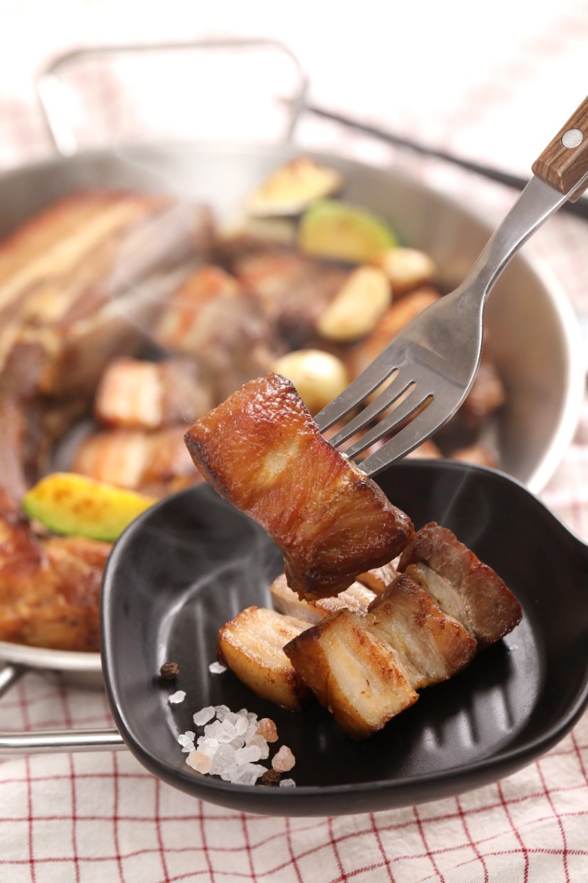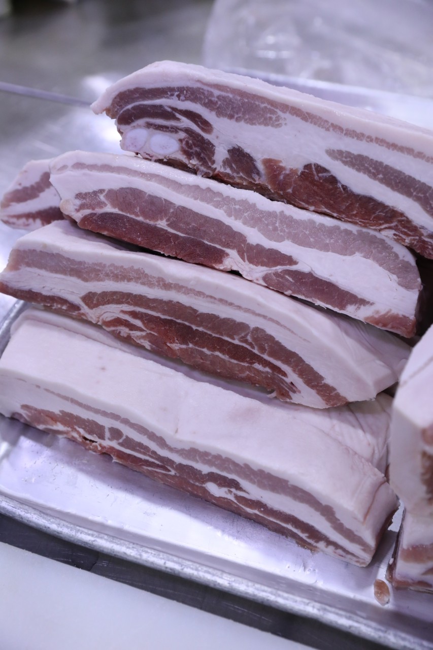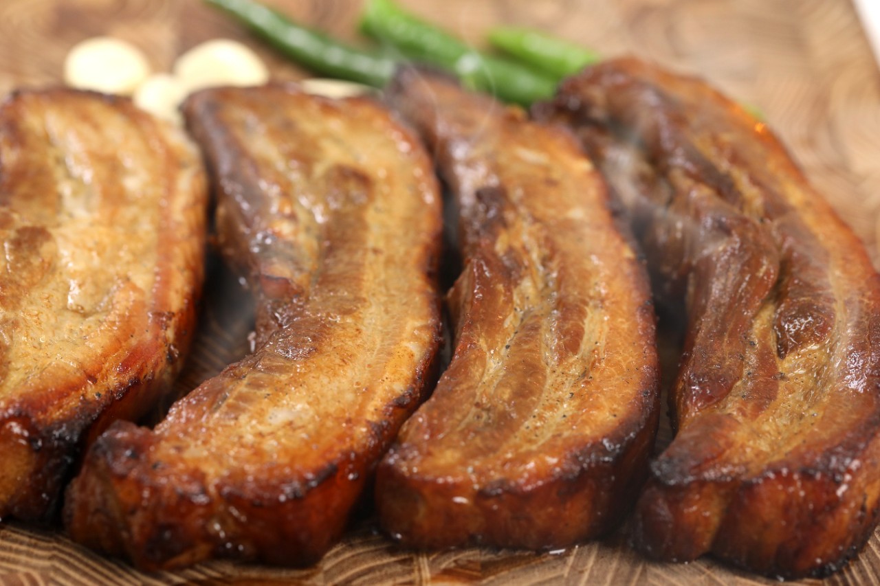 두툼하게 자른 삼겹살에