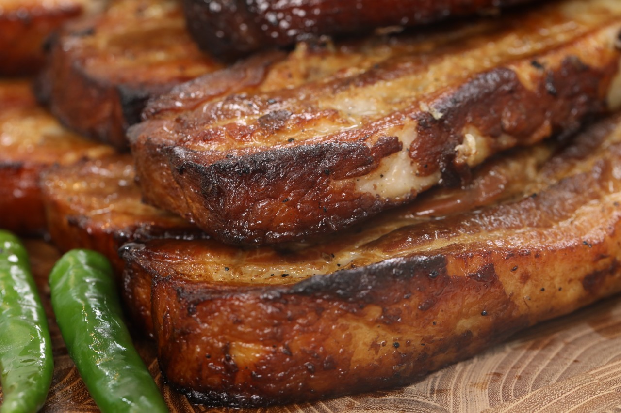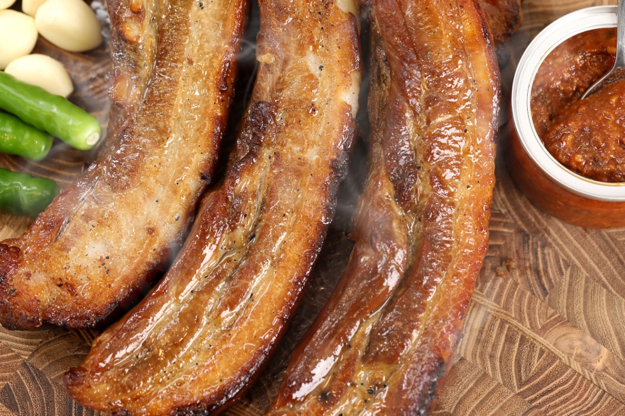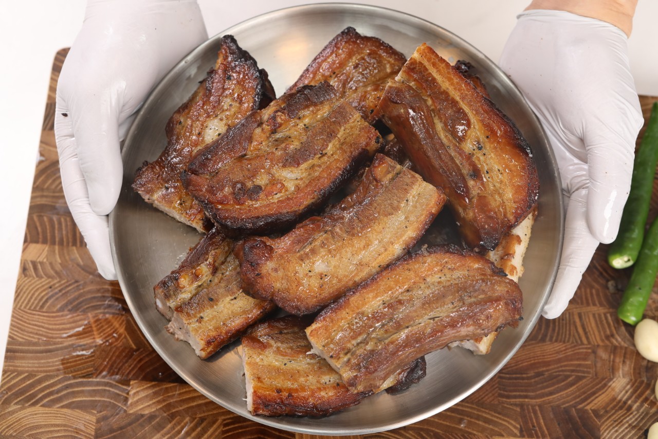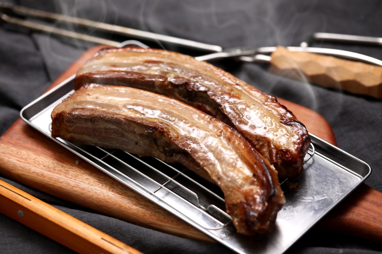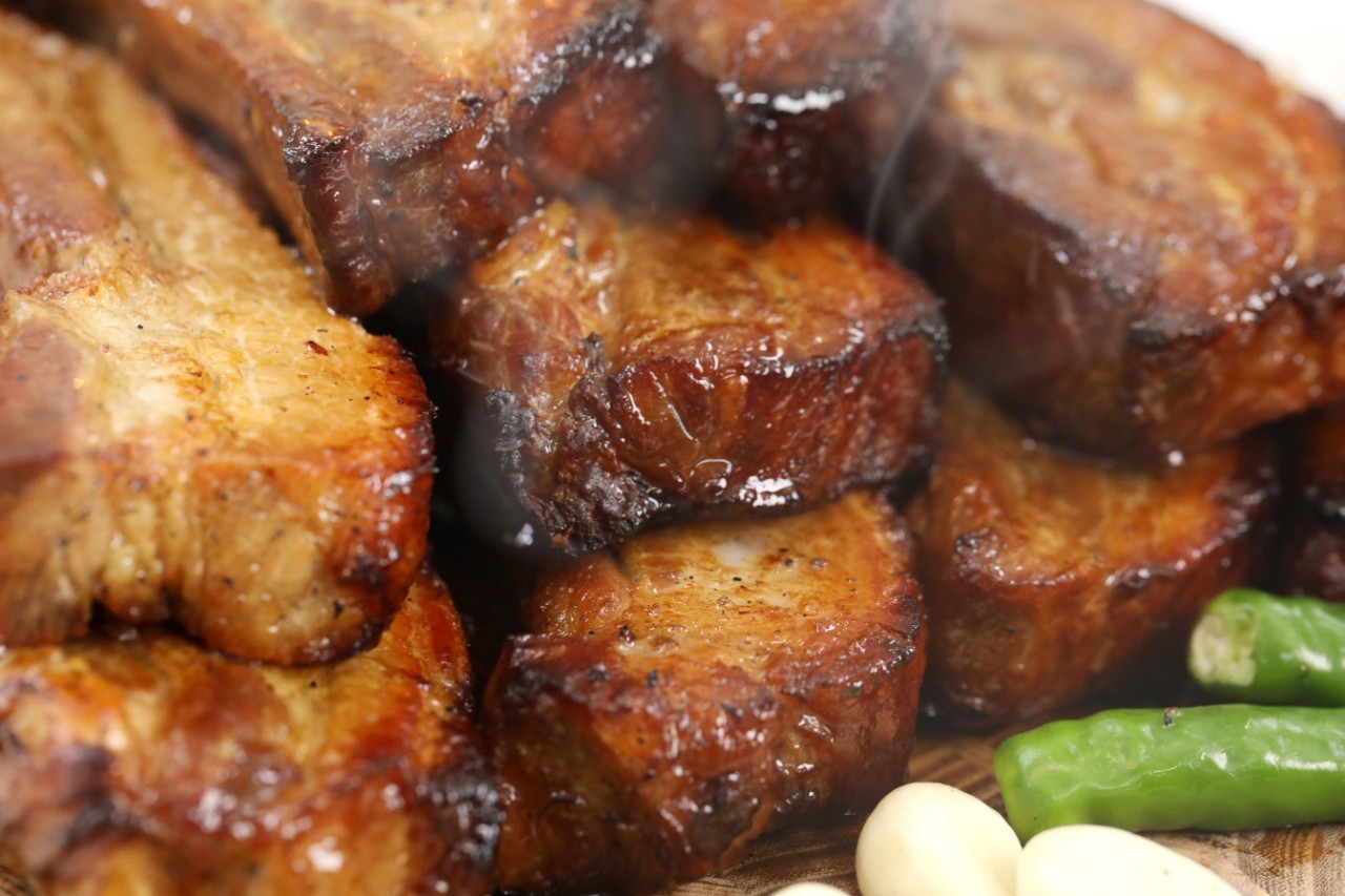 두툼하게 자른 삼겹살에