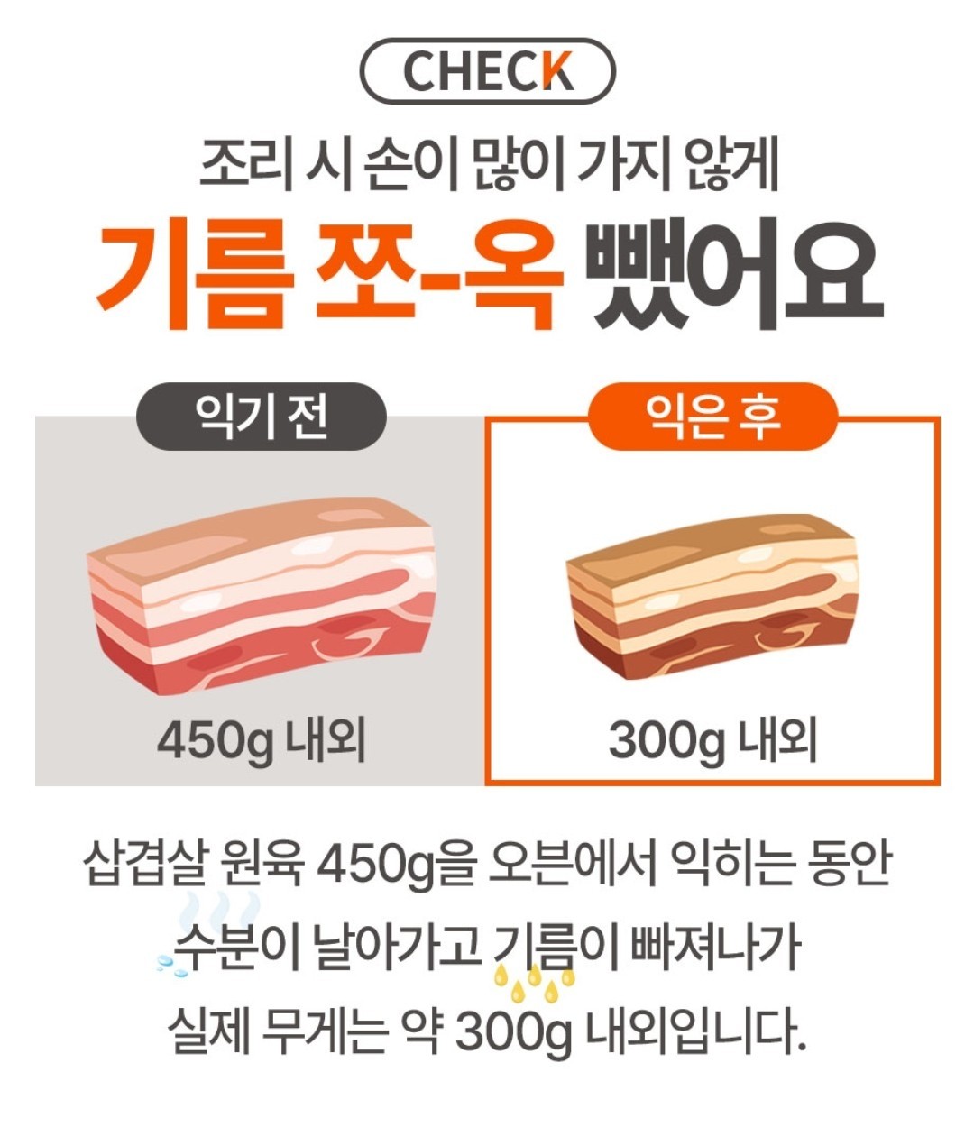 ✅ 익기 전 삼겹살 원육 450g 내외,