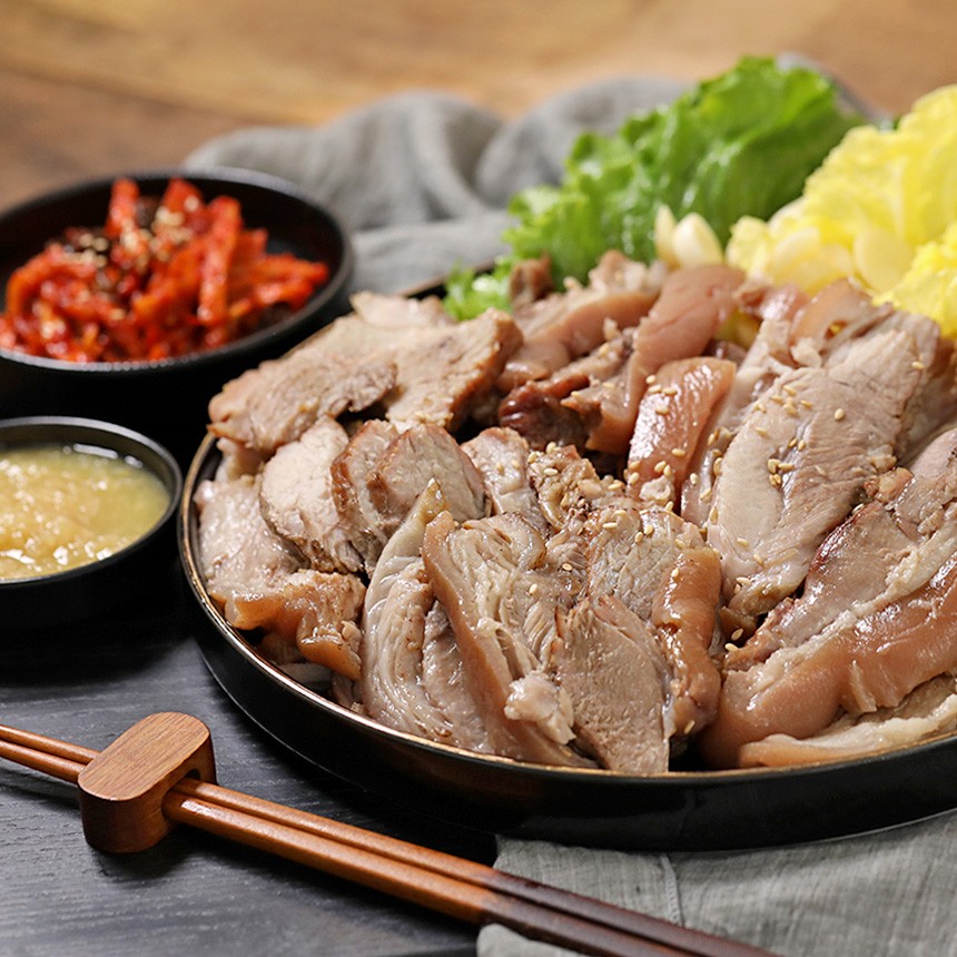 푹 익힌 수육보쌈 꺼내서 썰어드시기만 하면 되세요.