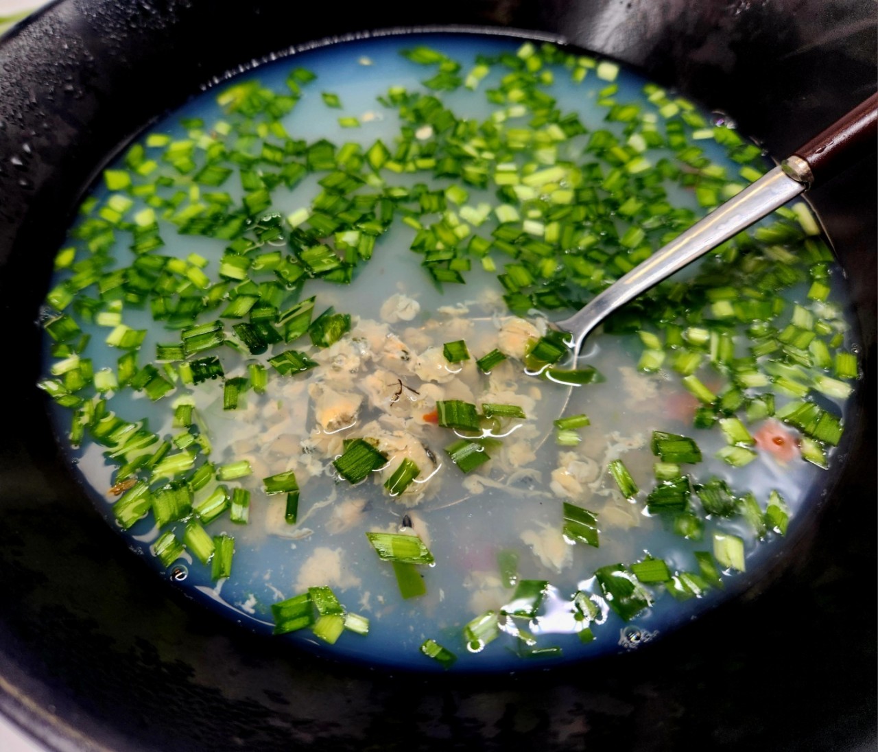 국물이 끓어 오를때 푸른빛을 띄는 재첩국은