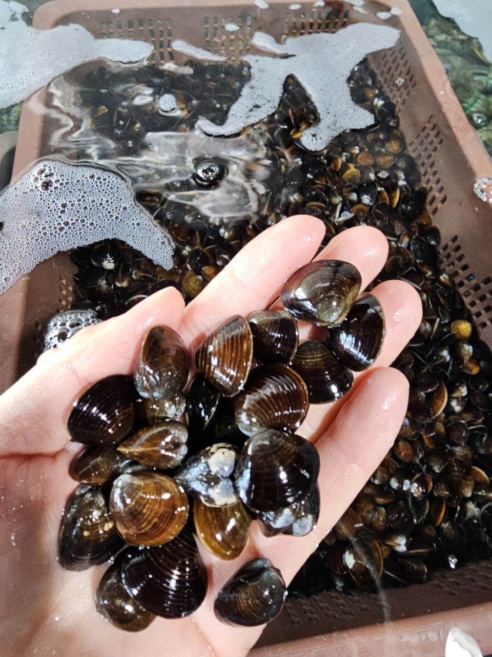 당일 채취한 생물 재첩