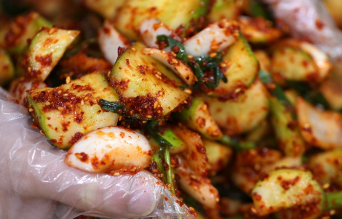 오이김치는 다른 김치에 비해 짠맛이 덜해서