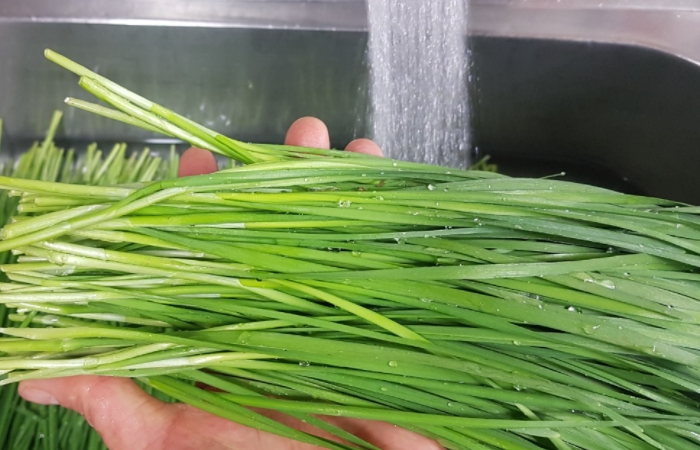 상큼한 부추 한줌, 달큰 양파 한줌 넣어