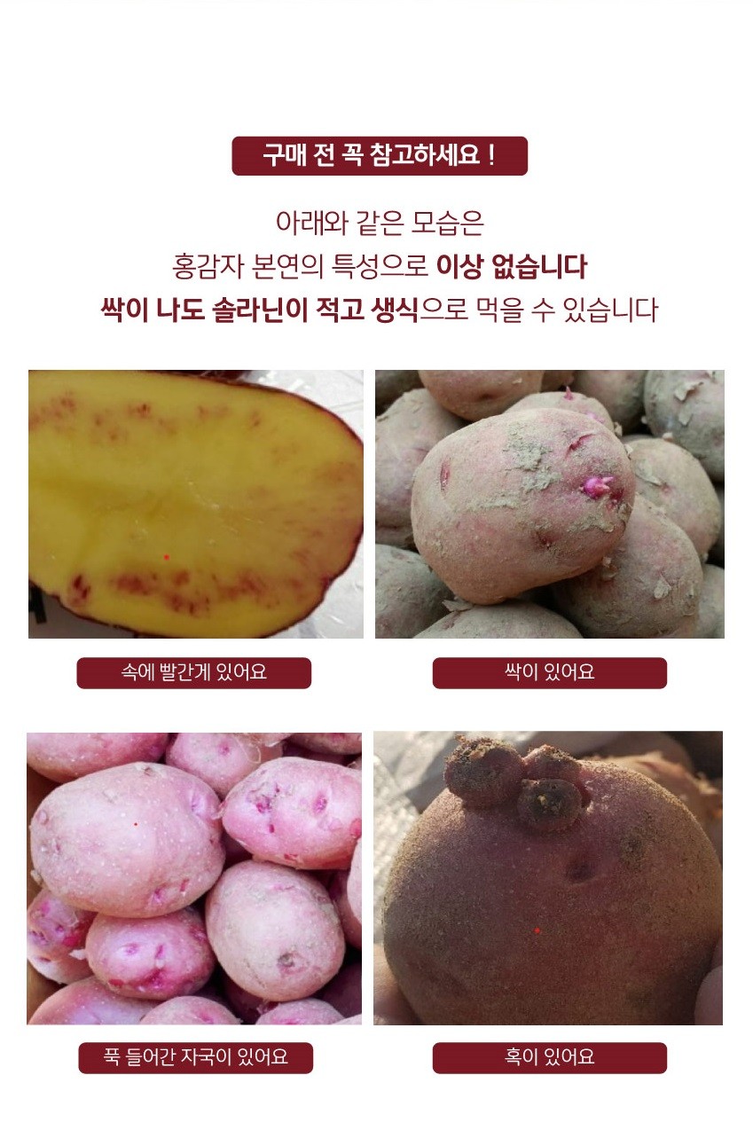✅ 홍감자는 수분이 많고 분이 많아 간혹 천공이 생길수 있어요.