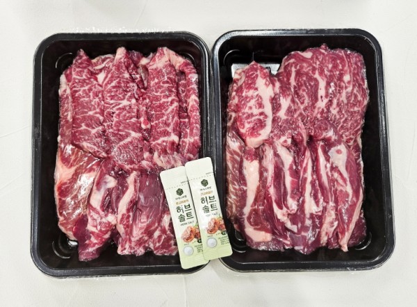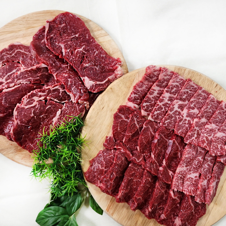 (꽃등심 300g + 갈비살 100g + 살치살 100g) * 2팩 구성으로 발송합니다.