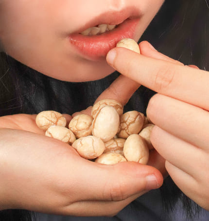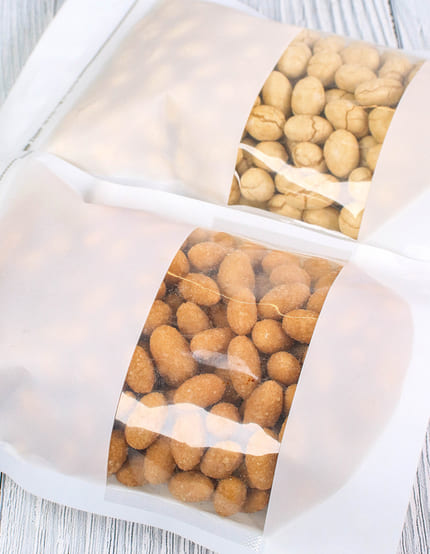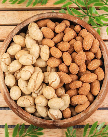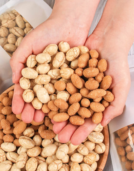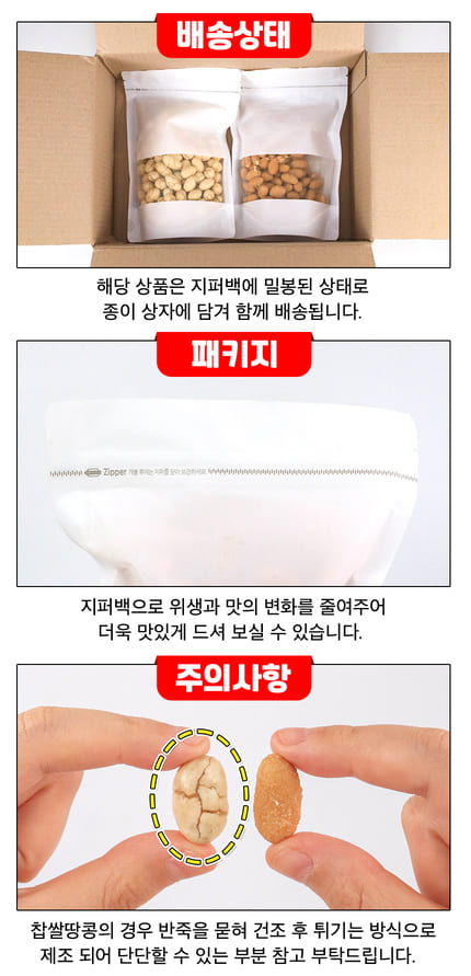 땅콩 겉에 찹쌀가루를 묻혀 건조한 후 튀겨낸 땅콩스낵으로