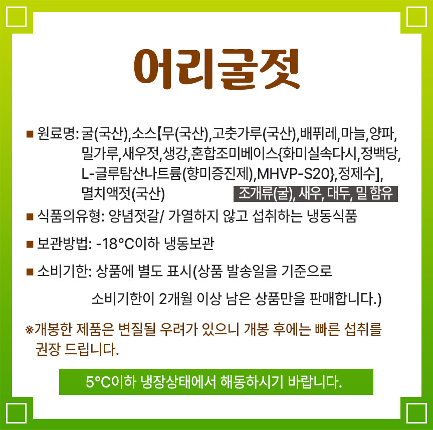 저희 수제어리굴젓은 무방부제, 무보존료!