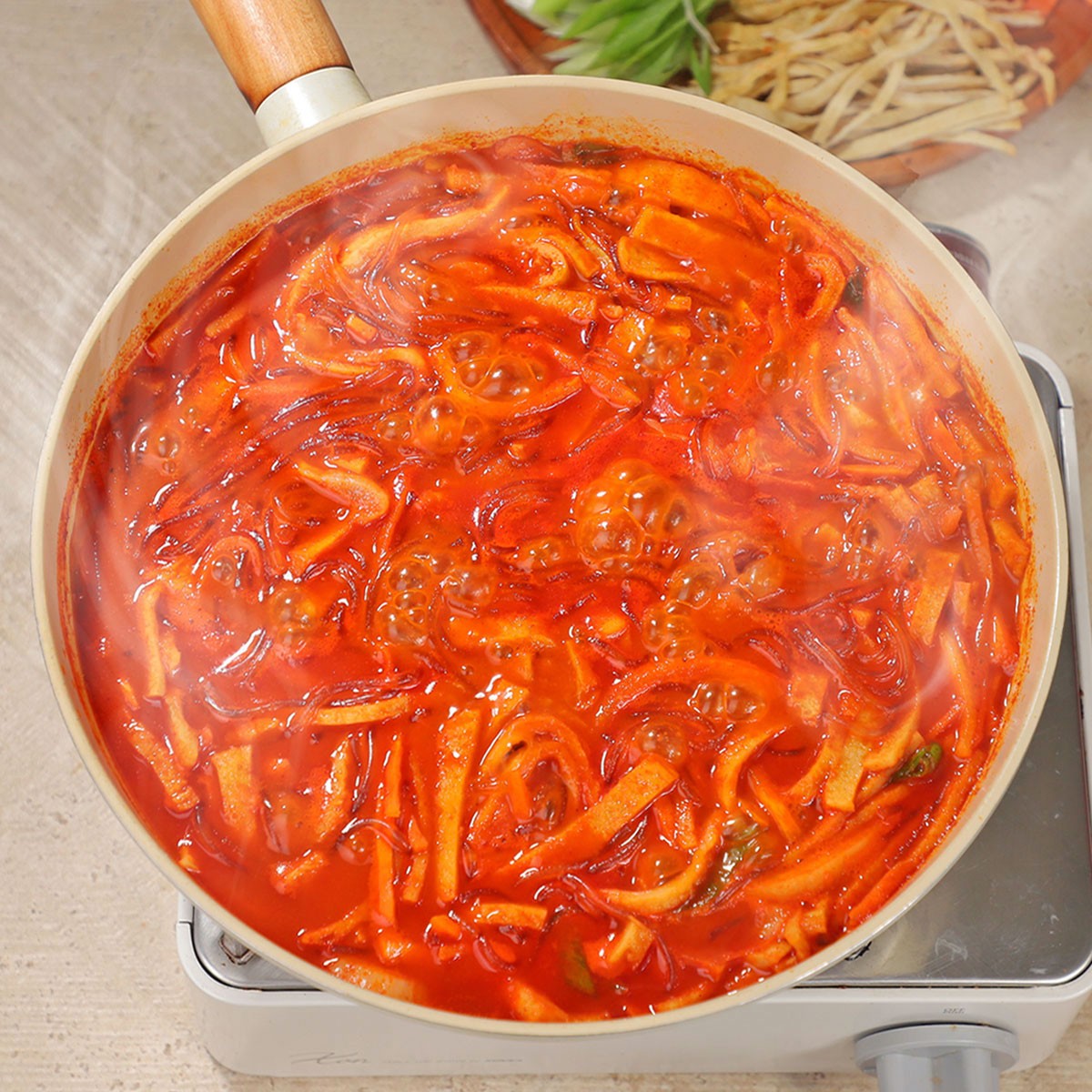 조리법 : 소스가 끓으면 잡채를 넣고 약 5분간 끓여드세요