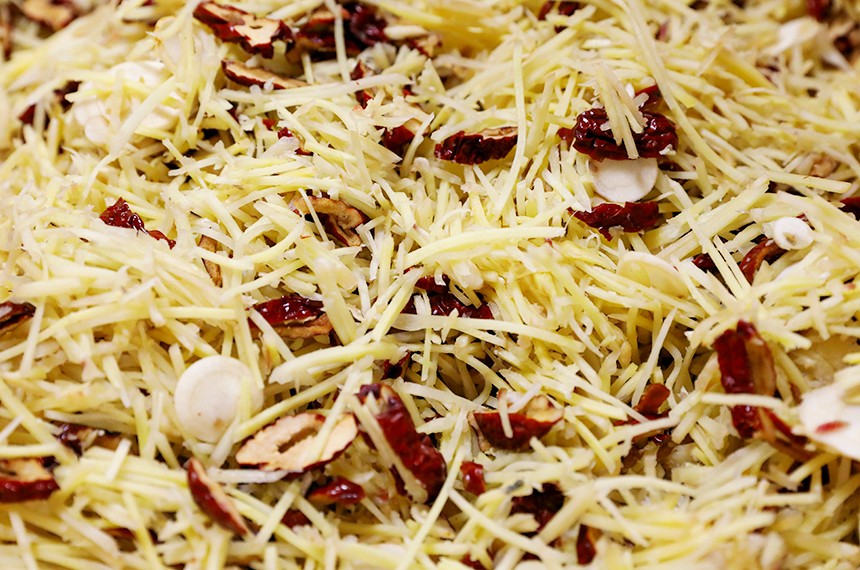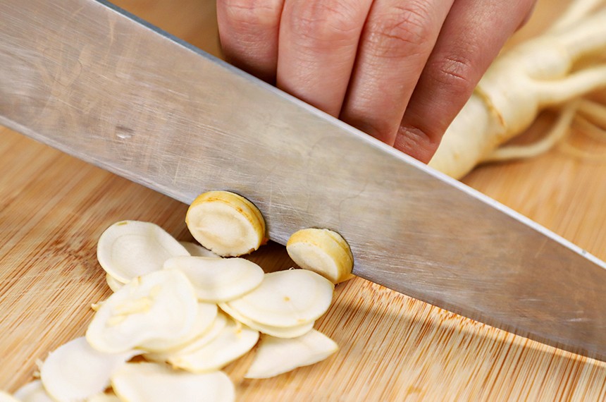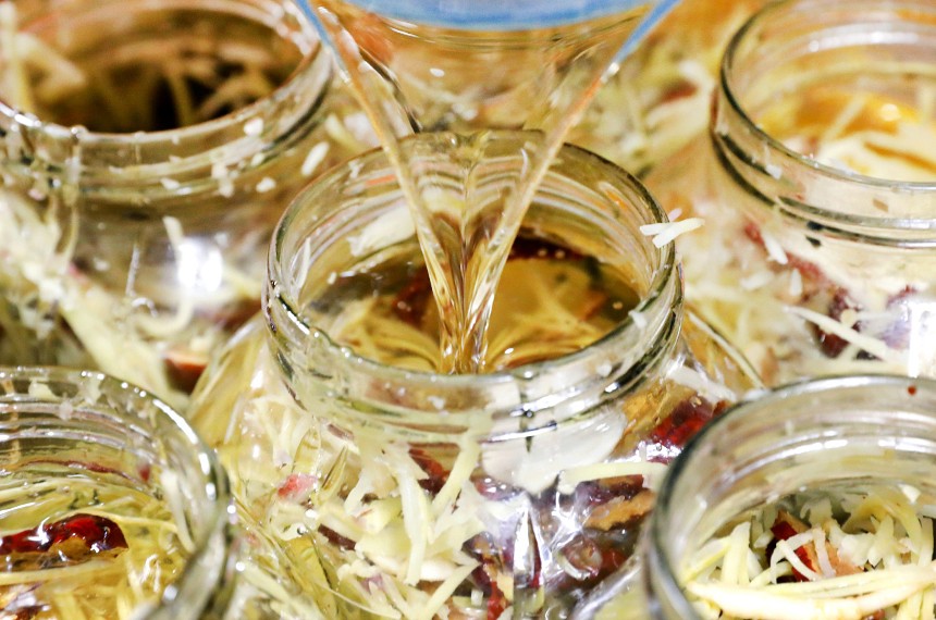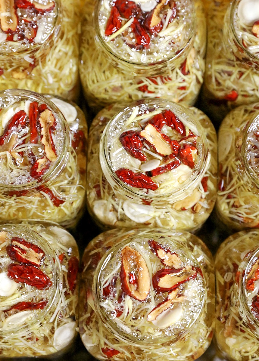 하나하나 칼로 썰어서 생강청을 담았어요.